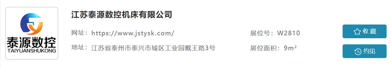 此次展会,江苏泰源数控机床有限公司将在西2号馆W2490展厅恭候您的到来!