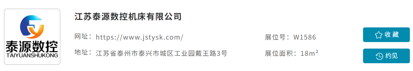 此次展会,江苏泰源数控机床有限公司将在W1号馆W1586展厅恭候您的到来!